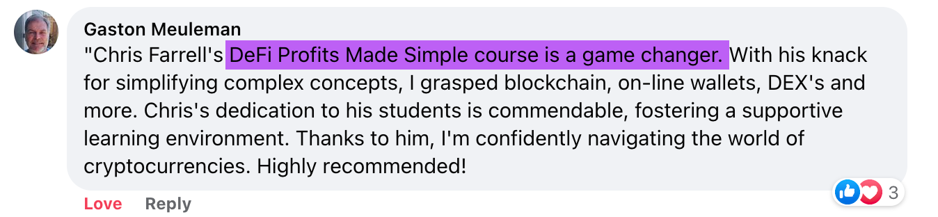 DeFi Profits Made Simple is your opportunity to discover firsthand, with no tech talk or geek speak, how to tap into this extraordinary opportunity we all have with DeFi.